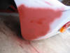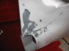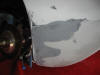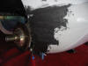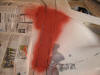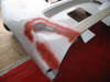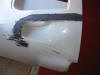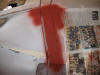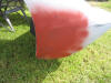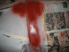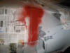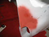 The rubbed down area sprayed with red primer.